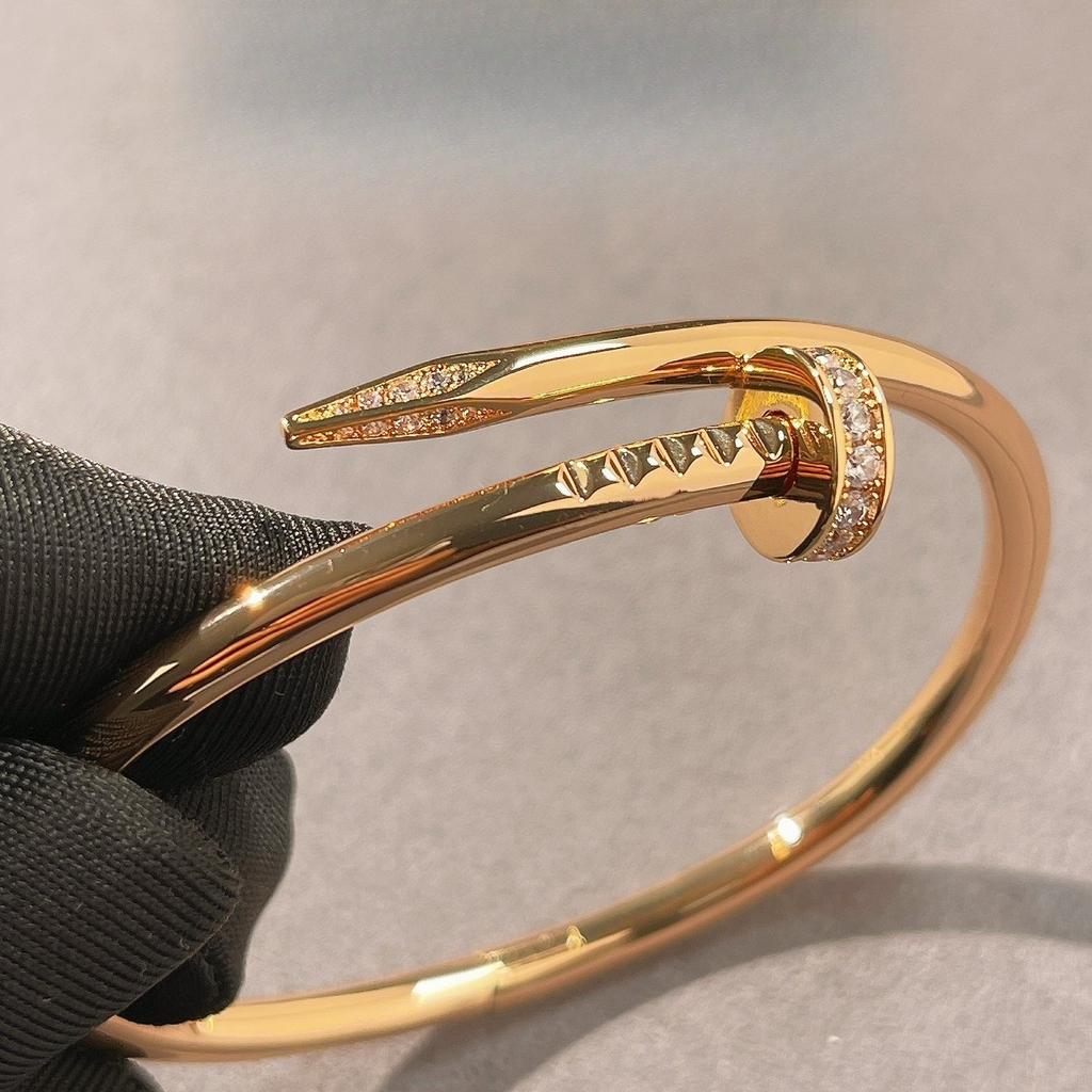 V Złoto Wersja Wysoka Klasyczny Gwoźdź Główka i Ogon z Diamentami Bransoletka dla Pary Grubo Platerowana 18K Różowe Złoto Lekki Luksus