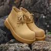 Fashion British Style Men Genuine Leather Work Safety Boots For Tooling Boot Winter Platform Short Plush Shoe Outdoor Antiskid Work Shoe