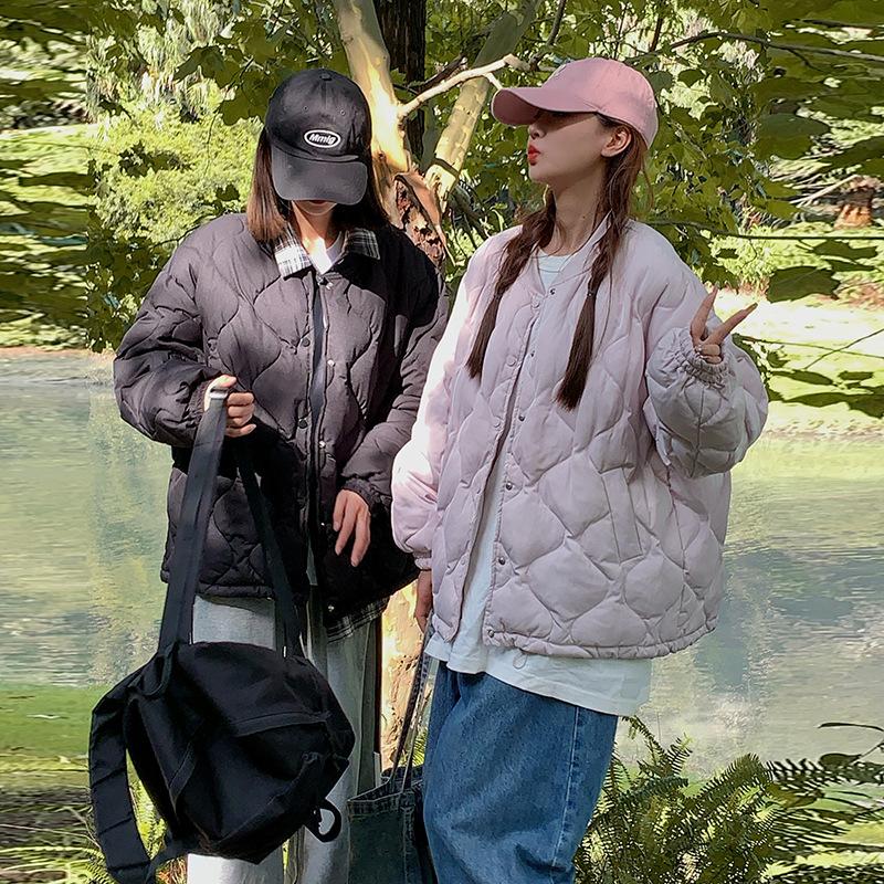 New Thin Cotton-padded Jacket Autumn and Winter Short Large Diamond Collarless Cotton-padded Jacket Jacket for Couples — kup artykuł online z bezpłatną dostawą na cały świat!