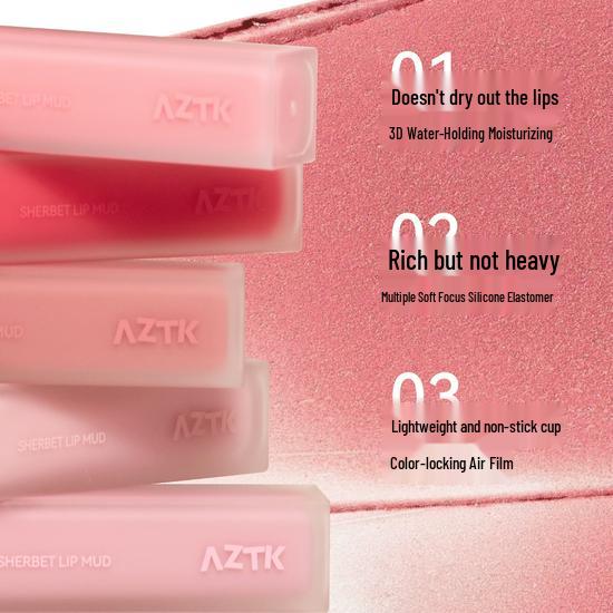 AZTK Non-Stick Matte Sherbet Lip Mud - Nude Color, Long-Lasting Lipstick — kup artykuł online z bezpłatną dostawą na cały świat!