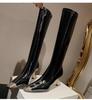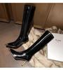 YX nowe cienkie buty kwadratowy nosek cienki obcas zamek boczny skóra lakierowana ale do kolan długie buty damskie żelazny nosek wysoki obcas krótkie buty wysokie buty