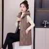Autumn and winter new rhombus grid down cotton vest women's medium and long loose hooded vest