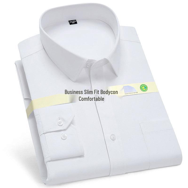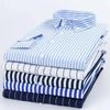Męska koszula z długim rękawem Golden Shield w białe paski, o luźnym kroju, biznesowa, formalna, zapinana na guziki — kup artykuł online z bezpłatną dostawą na cały świat!