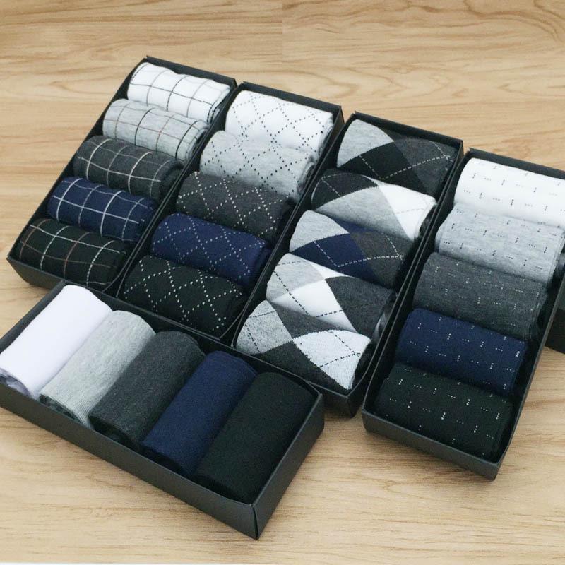 Męskie Skarpetki Bawełniane do Połowy Łydki Pudełko Prezentowe - 5 Par, Jednolite Kolory na Jesień i Zimę — kup artykuł online z bezpłatną dostawą na cały świat!