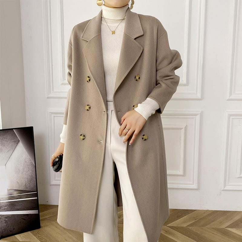 100% Wool Women Coat TIDENOVEL Autumn Wool Long Coat Handmade Pea Coat Winter Warm Wool Long Jacket Overcoat