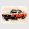 Lata 80. Znak Dukes of Hazzard General Lee - Pomarańczowy Muscle Car z Sylwetką Skaczącego Kowboja | Kolekcjonerski Dekor Stalowy — kup artykuł online z bezpłatną dostawą na cały świat!