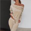 Moda damska Jesień i zima Casual 2-częściowy koralowy polar Topy z odkrytymi ramionami + zestaw długich spodni Zestawy do biegania Oddychająca odzież sportowa Odzież do jogi — kup artykuł online z bezpłatną dostawą na cały świat!