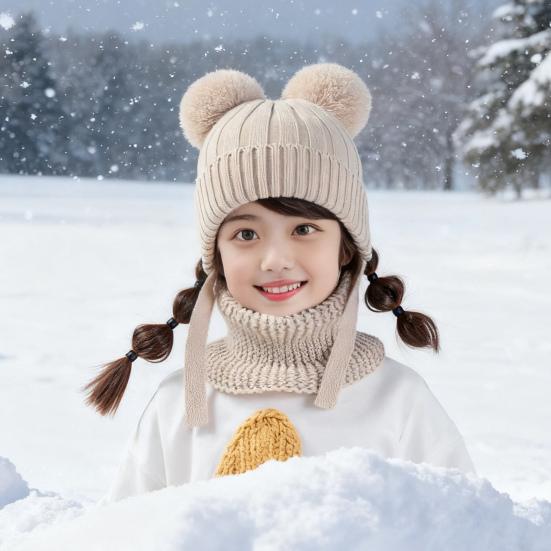 Kapelusz z rondem ma urocze wełniane pompony dla dodatkowego uroku, a gruby dzianinowy szalik zapewnia doskonałą ochronę szyi, aby utrzymać Twoje dzieci w cieple przez cały dzień..