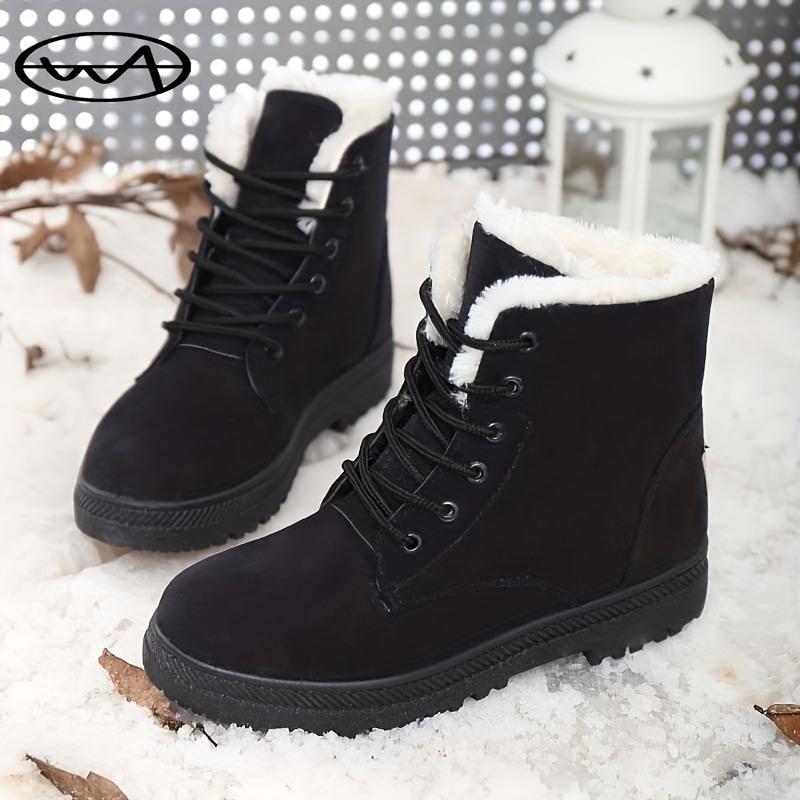 Pluszowe Wewnętrzne Termiczne Damskie Okrągłe Palce Sznurowane Śniegowce, Antypoślizgowe Zimowe Casualowe Botki do Połowy Łydki — kup artykuł online z bezpłatną dostawą na cały świat!