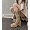 [Ogromna wysokość wyświetlacza 8 cm] Długie buty na grubej podeszwie, niewielkie podwyższenie, buty jeździeckie za kostkę, damskie składane buty westernowe
