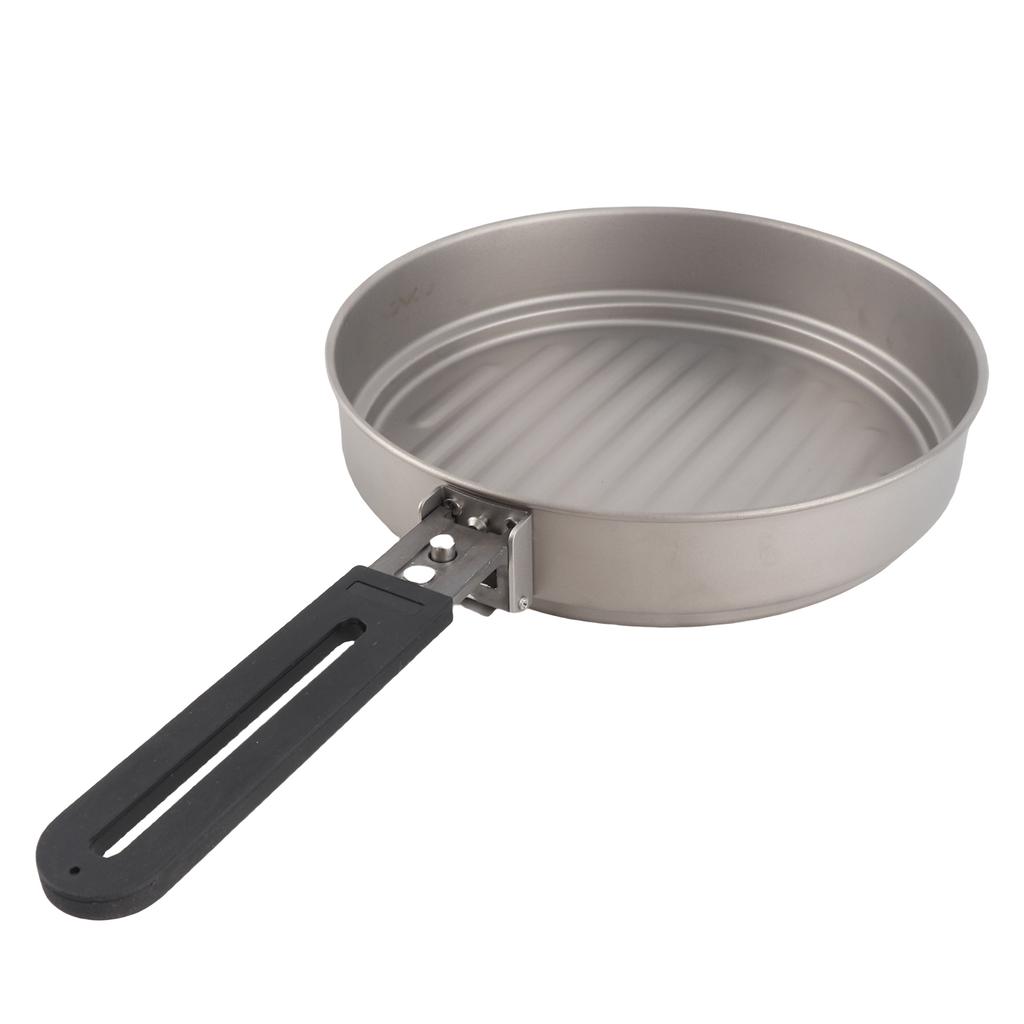 Lixada 1100ml Titanium Fry Pan Ultralight Grill Frying Pan with Folding Handle for Outdoor Cooking Camping Hiking
