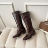 Wersja ze skóry bydlęcej~ Skórzane buty wysokie z grubym obcasem w stylu retro brytyjskim, cienkie, wypolerowane, jesień i zima, nowe długie buty — kup artykuł online z bezpłatną dostawą na cały świat!
