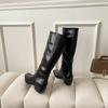 Wersja ze skóry bydlęcej~ Skórzane buty wysokie z grubym obcasem w stylu retro brytyjskim, cienkie, wypolerowane, jesień i zima, nowe długie buty