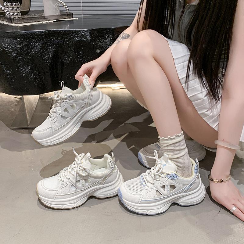 Height-increasing dad shoes women 2025 new versatile Paris casual silver spring and summer fried street lace-up small sneakers
