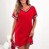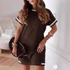 Europejska i Amerykańska Moda Damska Sukienka Długa z Dekoltem w Serek w Paski Patchwork — kup artykuł online z bezpłatną dostawą na cały świat!
