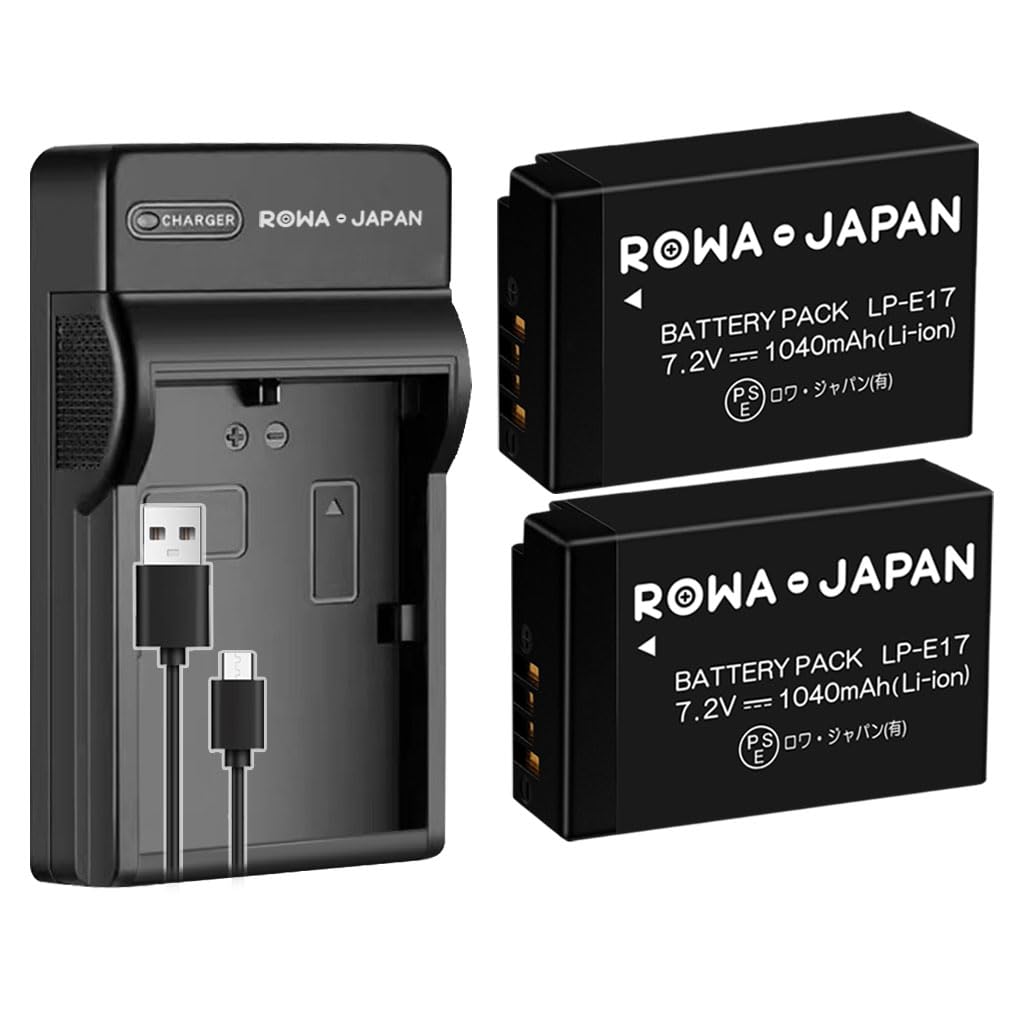 Rowa Japan Kompatybilny Kompatybilny Ładowarka USB Standard PSE Kompatybilny z Canon Rebel EOS i RP LP-E17 (2 Ładowarki) + Zestaw LC-E17 Type-C, Inspekcja,
