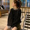 Damski sweter z czarnymi cekinami, luźny splot, styl hongkoński, jesień/zima 2025 - Uniwersalny, swobodny krój — kup artykuł online z bezpłatną dostawą na cały świat!