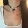 Y2K Gothic Multilayer Retro Brown Faux Leather Rivet Pendant Necklace Women Delicate Choker Star Black Heart Punk Jewelry