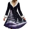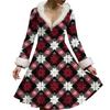 Damska codzienna sukienka z dekoltem w serek, z pluszowym nadrukiem świątecznym i długim rękawem