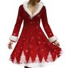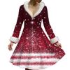 Damska codzienna sukienka z dekoltem w serek, z pluszowym nadrukiem świątecznym i długim rękawem — kup artykuł online z bezpłatną dostawą na cały świat!