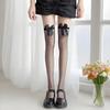 Czarne Koronkowe Pończochy do Uda z Kokardką - Damskie Seksowne Skarpetki za Kolano