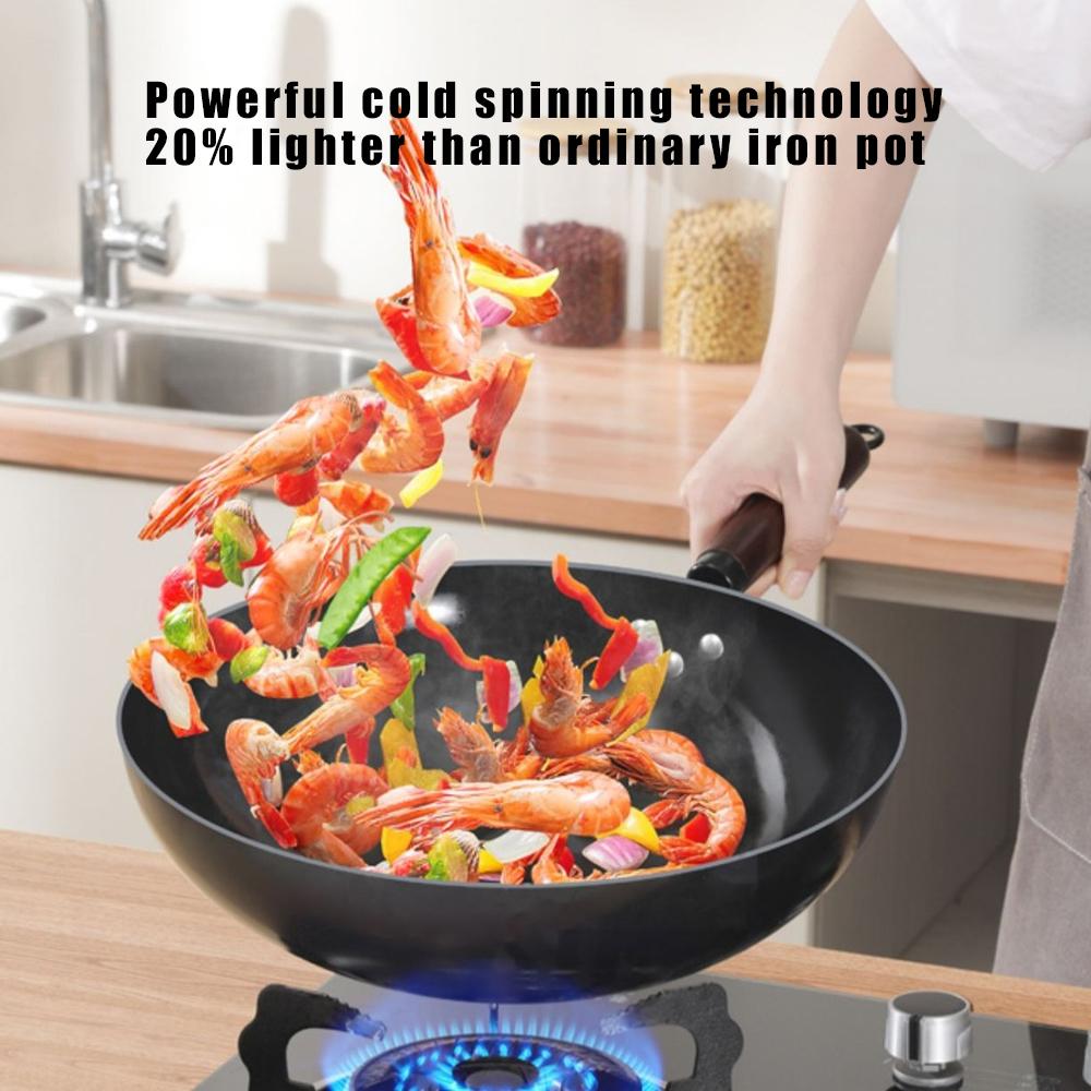 32cm Uncoated Wok Pot Frying Pan Home High Quality Handmade Cooking kitchen Cookware Chinese Traditional Non-stick Iron Pan