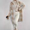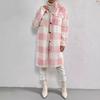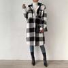 Jesienno-zimowy płaszcz pluszowy w kratę z klapami zapinany na guziki, luźny, temperamentny, do pracy, długi płaszcz dla kobiet