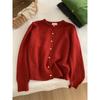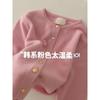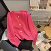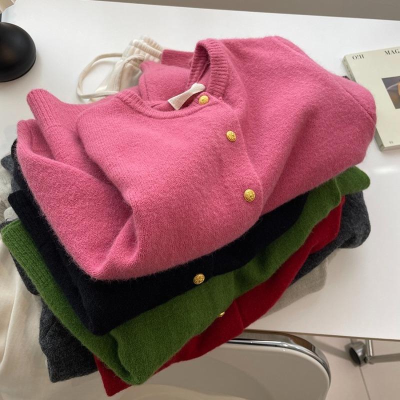 White raspberry powder small gold button knitted cardigan women's autumn and winter soft waxy thickened warm crew neck sweater jacket
