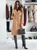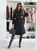 Zimowy Damski Wełniany Płaszcz Dwurzędowy z Paskiem Prosty Modny Jednolity Kolor Jesień