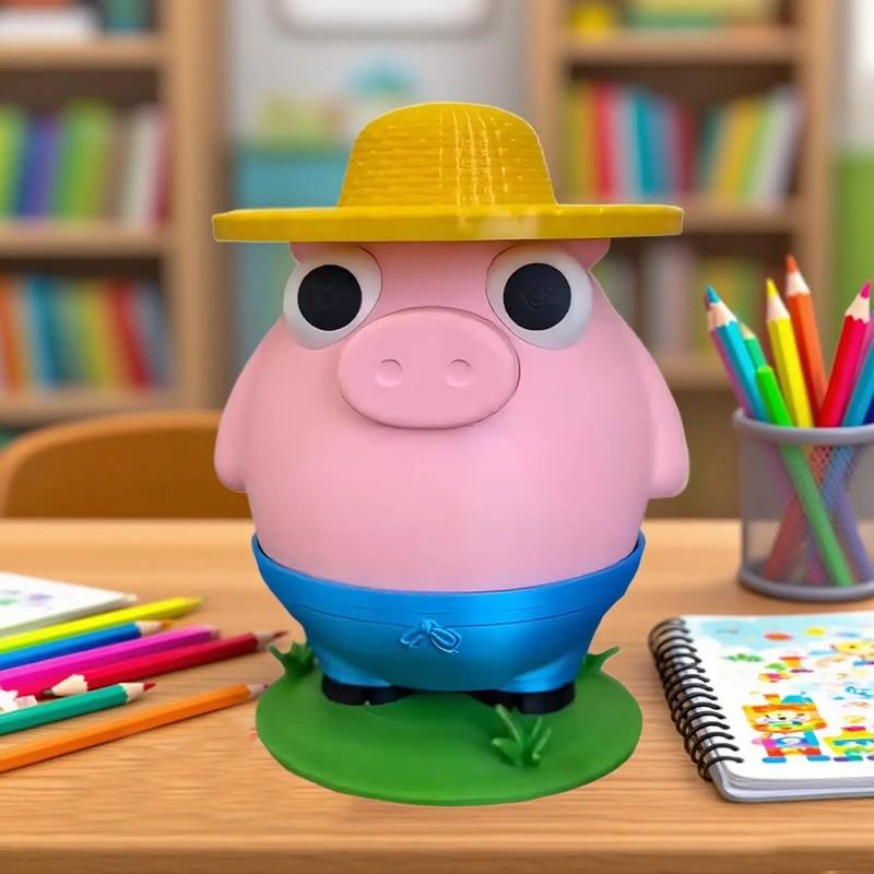 3D Printed Farmer's Crack Coin Bank Funny Pig Money Bank for Kids Wacky Saving Coin Jar Ornament for Desk Decoration