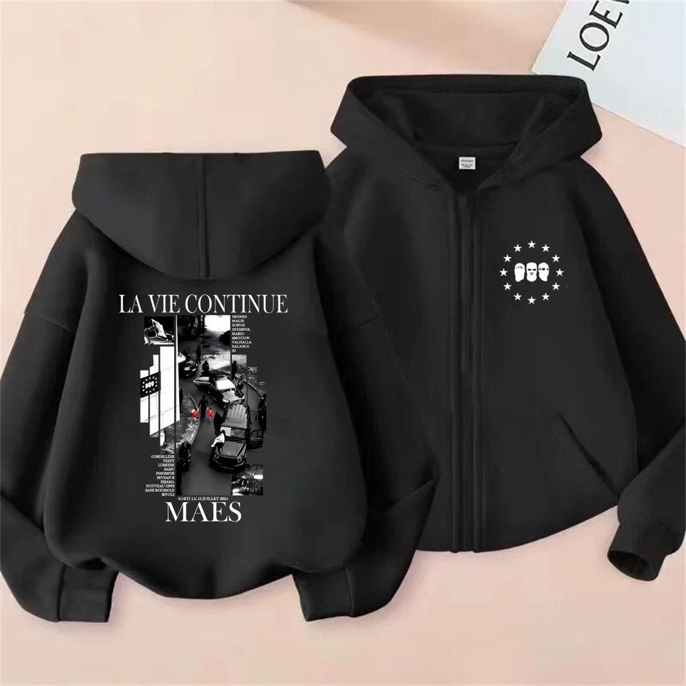 Rapper Maes La Vie Continue Album Graphic Zipper Hoodie Men Women Hip Hop Fashion Pop Music Hoodies Male Vintage Zip Up Jacket