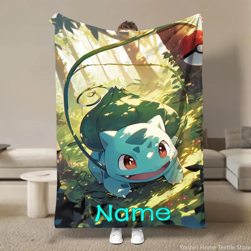 Personalizowany koc z imieniem na zamówienie Koc z nadrukiem Pokémon Bulbasaur Koc dla dzieci i dorosłych Miękki ciepły Koc podróżny na sofę do łóżka