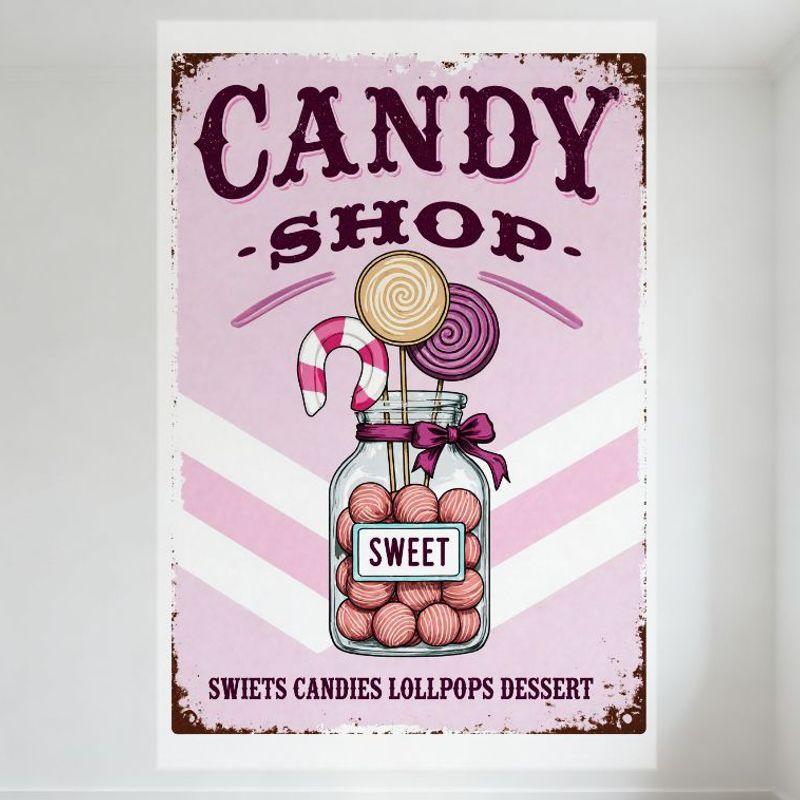 Vintage Style Candy Shop Metal Tin Sign Light Pink Chevron Background Glass Jar with Pink Sweets for Home Wall Decor Bar Club Ca