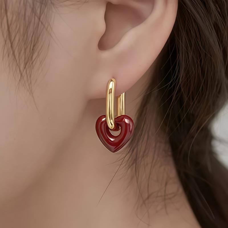 Retro Romantyczne Kolczyki Wiszące z Serduszkiem w Kolorze Wina Dla Kobiet Impreza Weselna Dziewczęce Modna Biżuteria Akcesoria na Prezent Świąteczny