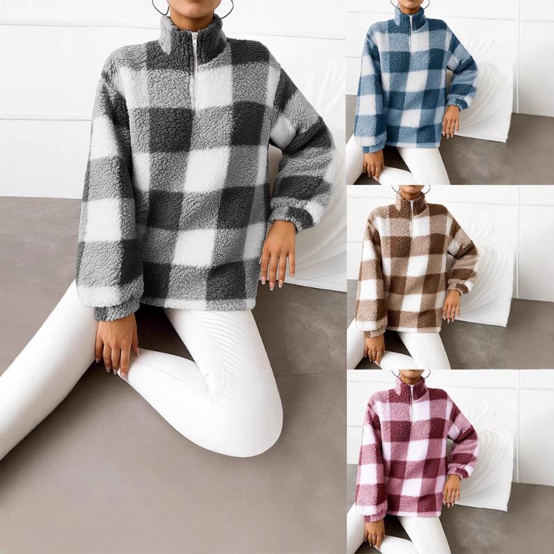 2025 Nowa Casualowa Bluza Damska Pluszowa Pulower ze Stójką, Zapinana na Zamek, z Długim Rękawem, Wielokolorowa