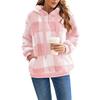 Pluszowa Bluza z Kapturem Kieszeń Damska Luźna Codzienna Pulower Długi Rękaw Kraciasta z Kapturem Sportowy Sweter