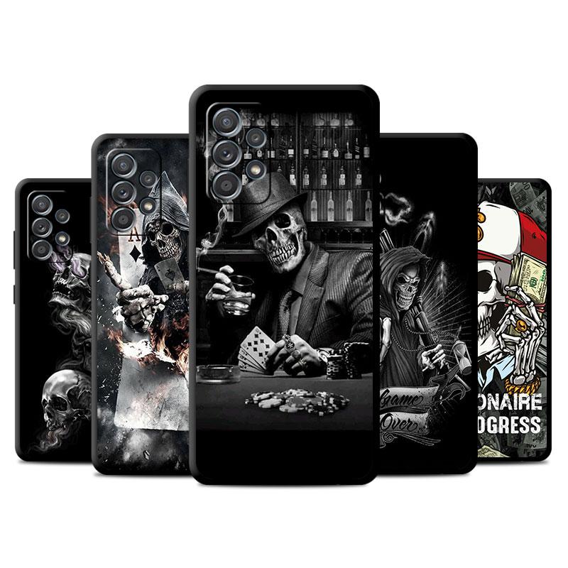 Czarny Etui dla Samsung Galaxy A52 A73 5G A33 A12 A53 A22 A13 4G A24 A14 A23 A54 A70 Miękki Pokrowiec na Telefon Czarna Kosa Czaszka Szkielet — kup artykuł online z bezpłatną dostawą na cały świat!