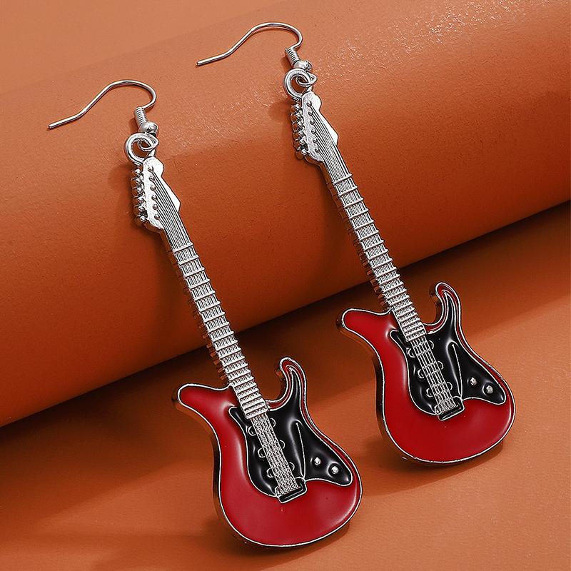 Obega Guitar Drop Earrings For Women Copper Color Black Red White Epoxy Vintage Girls Cute Jewelry Gift Fishhook Style