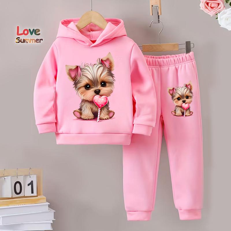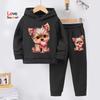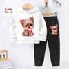Girls Autumn And Winter Hoodies hoodie pant 2pcs cute Dog Prints Lined With Warm Fleece Paired With Sports Pants Tracksuit