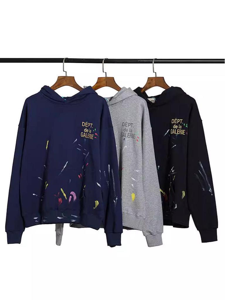 GALLERY DEPT Bluza Unisex z Kapturem Bawełniana z Plamami Farby Graffiti - Jesienna Luźna — kup artykuł online z bezpłatną dostawą na cały świat!