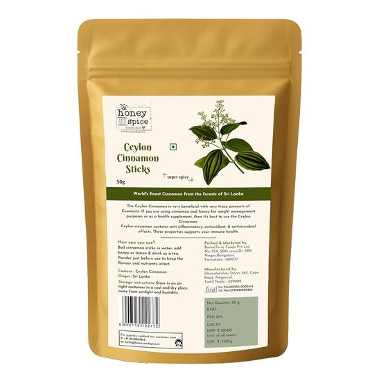 Honey and Spice Ceylon Dalchini Cinnamon Sticks Organic Srilankan - 50 Gms (True Srilankan Barks/Rolls) Flavourful for Cooking, Seasoning, Baking — kup artykuł online z bezpłatną dostawą na cały świat!