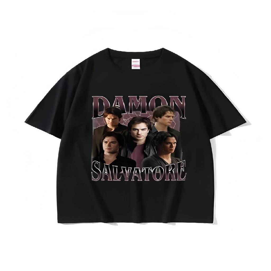Damon Salvatore Nadruk Graficzny Koszulki Męskie Vintage Wysokiej Jakości Modna Koszulka Casual Bawełniana Luźna Koszulka Streetwear