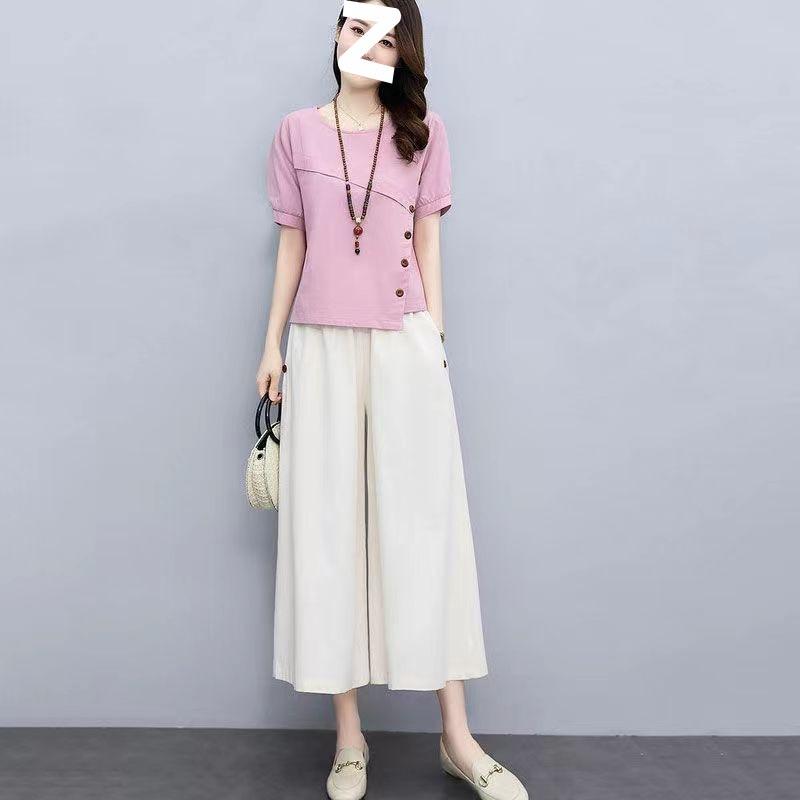 Suit for Women Summer Loose Casual Fashion Simple Temperament Soft Linen Two-piece Set
