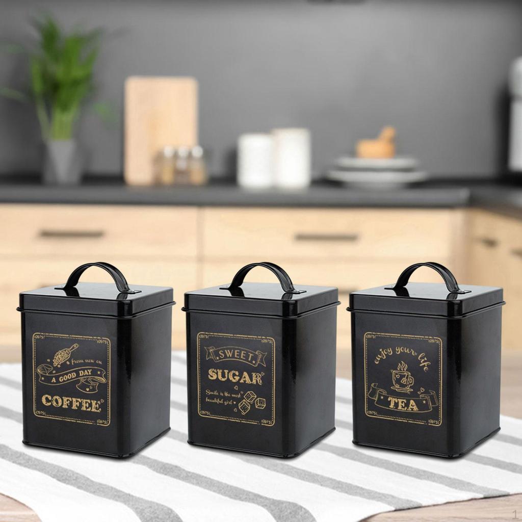 Zestaw 3 pojemników kuchennych na blat Słoiki na żywność 1,5L Stylowe naczynia Vintage pojemniki — kup artykuł online z bezpłatną dostawą na cały świat!