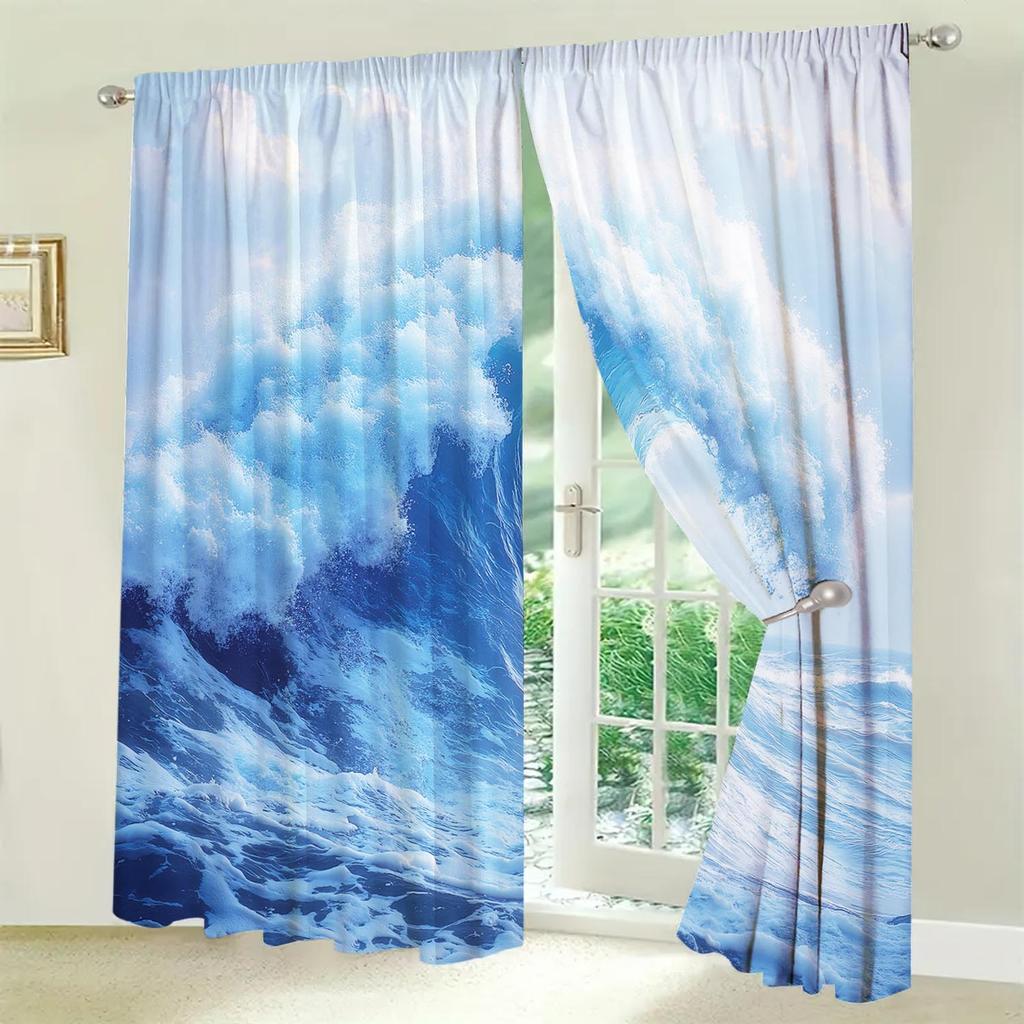 2-Panels Modern Minimalist Wave Diagram Curtains Shade and Privacy Protection Suitable for Decorating Various Rooms