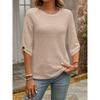 VEZFAA Moda damska Casual Lato Wiosna Jednolity kolor Nadruk Rękaw 1/2 Bluzki i koszule z okrągłym dekoltem