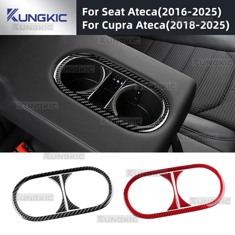 Do Seat Ateca 5F 2016 2017-2025 Do Cupra Ateca 5F 2018-2025 Prawdziwy Miękki Włókno Węglowe Naklejka Wykończeniowa Uchwytu na Napoje w Tylnym Otworze Samochodu — kup artykuł online z bezpłatną dostawą na cały świat!