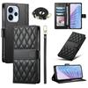 Etui Portfelowe ze Stojakiem i Paskiem do Oppo Reno15 F 5G, Skórzane Etui na Telefon z Pikowaniem w Kształcie Rombu, Długi / Krótki Pasek