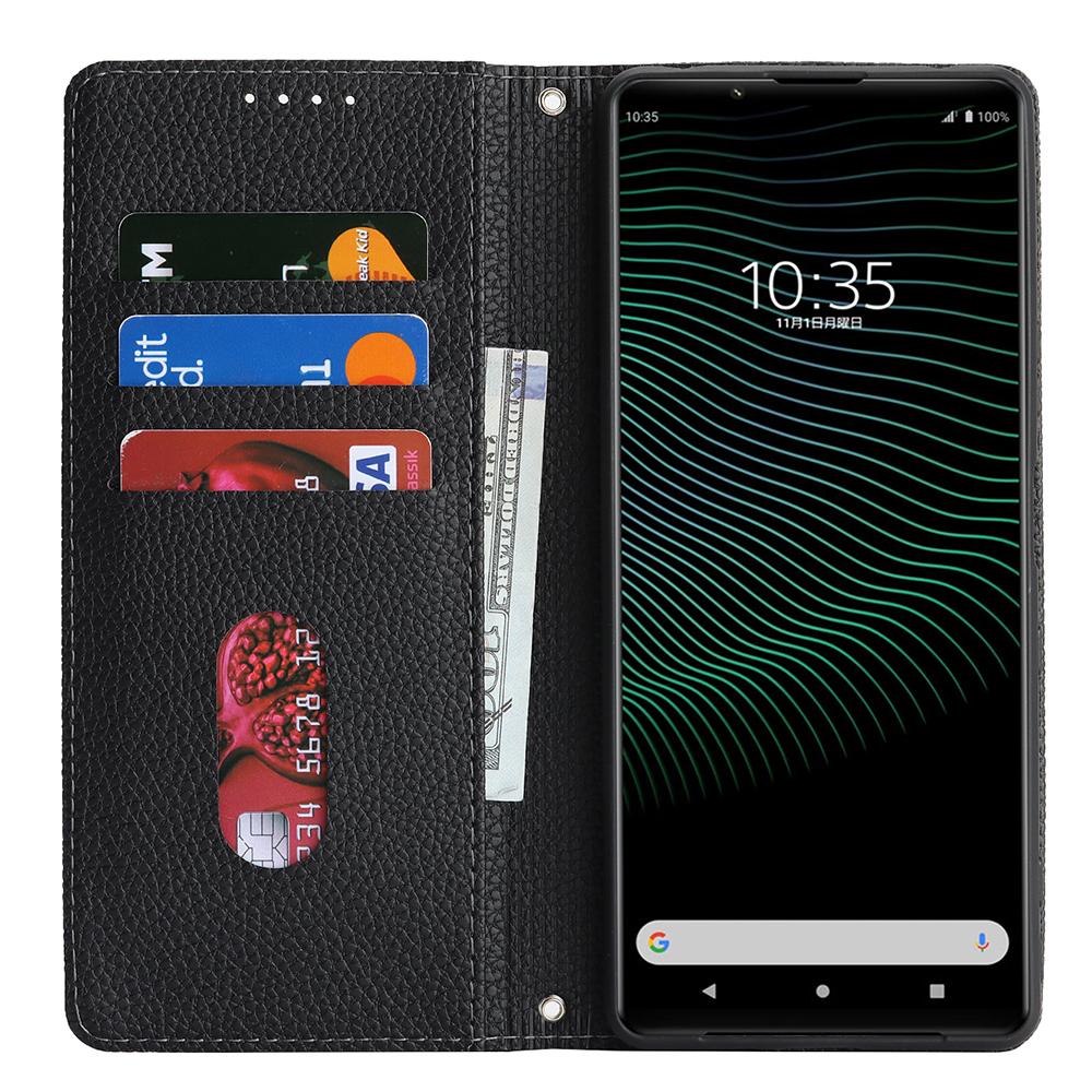 Etui portfel z podstawką i paskiem do Sony Xperia 1 IV 5G, skóra z teksturą liczi, klapka — kup artykuł online z bezpłatną dostawą na cały świat!
