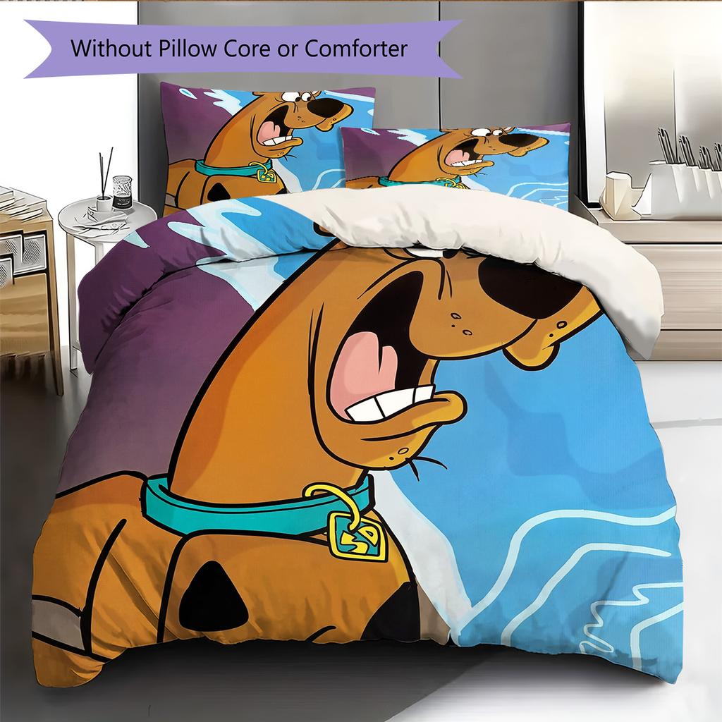 Pościel z wzorem Scooby-Doo Zestaw kołdry Dekoracja domu Prezent (1 * poszwa na kołdrę + 2 * poszewki na poduszki bez rdzenia)